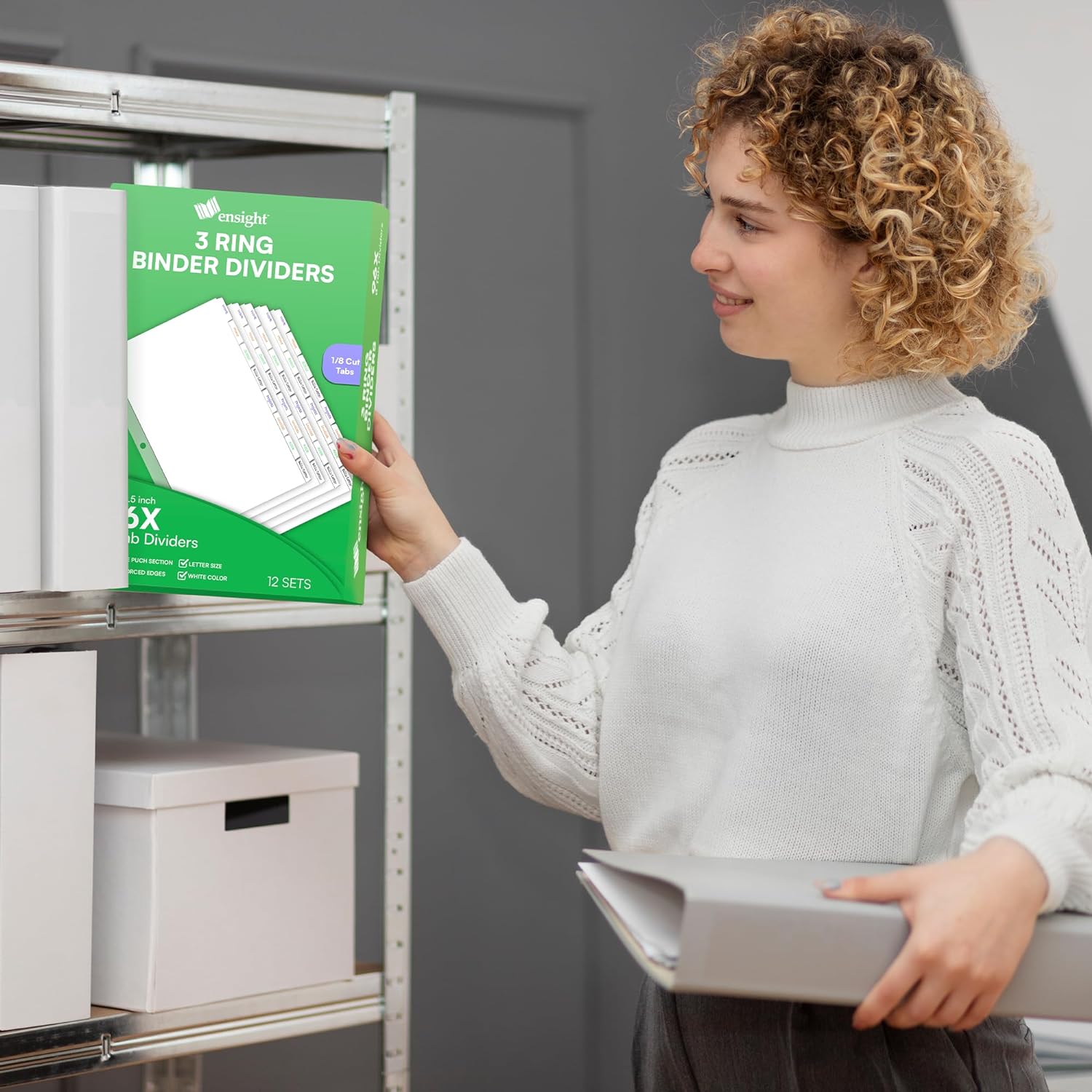 1/8 Cut Tab Dividers, 3 Ring Page Binder Dividers Bulk, 96 Per Box - Divider Pages with Tabs, Decorative Printable Rewritable Divider Tabs, Exhibit Tab Dividers for 3 Ring Binders Bulk - Ensight