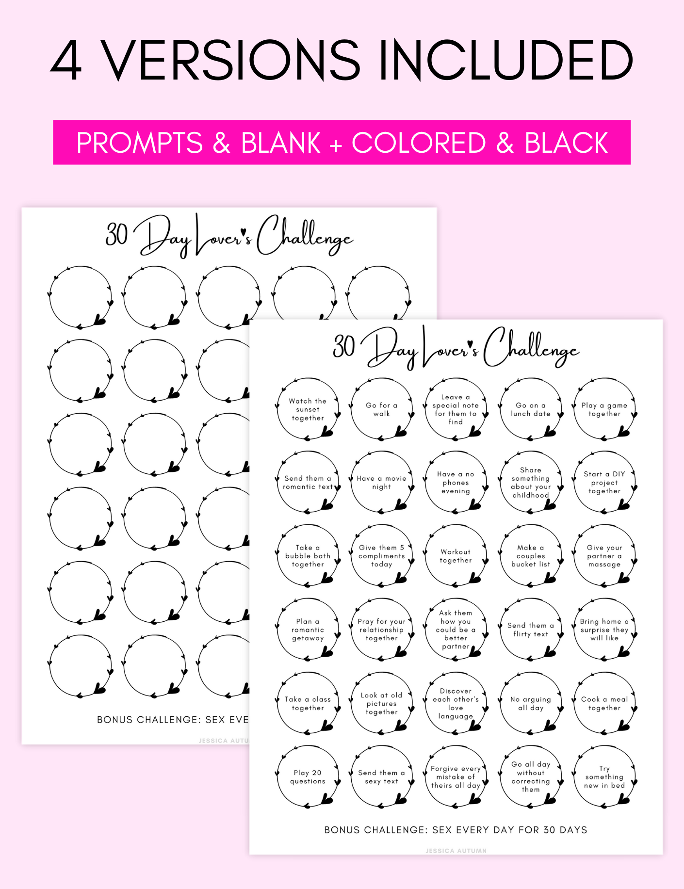 This 30 Day Lover's Challenge is just what you need to help you reconnect with your partner. Many of the challenges shouldn't take very long to do and you can easily fit it in no matter your schedule.