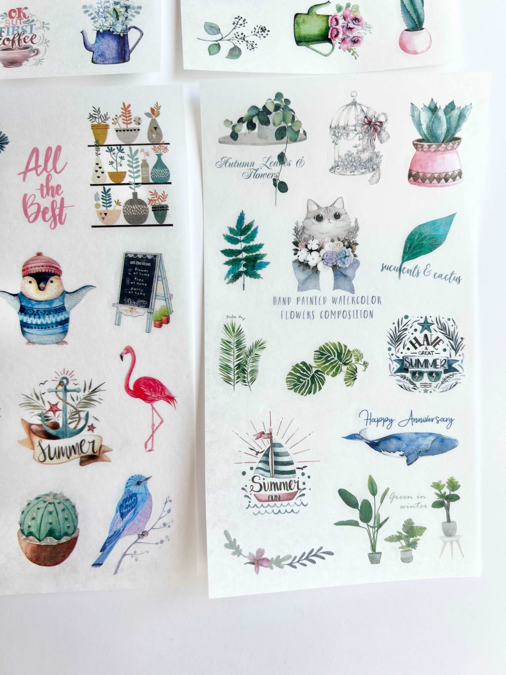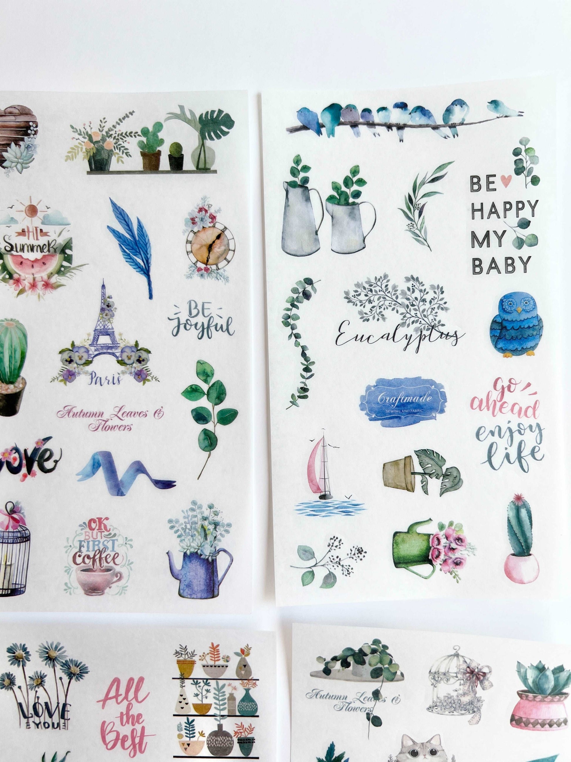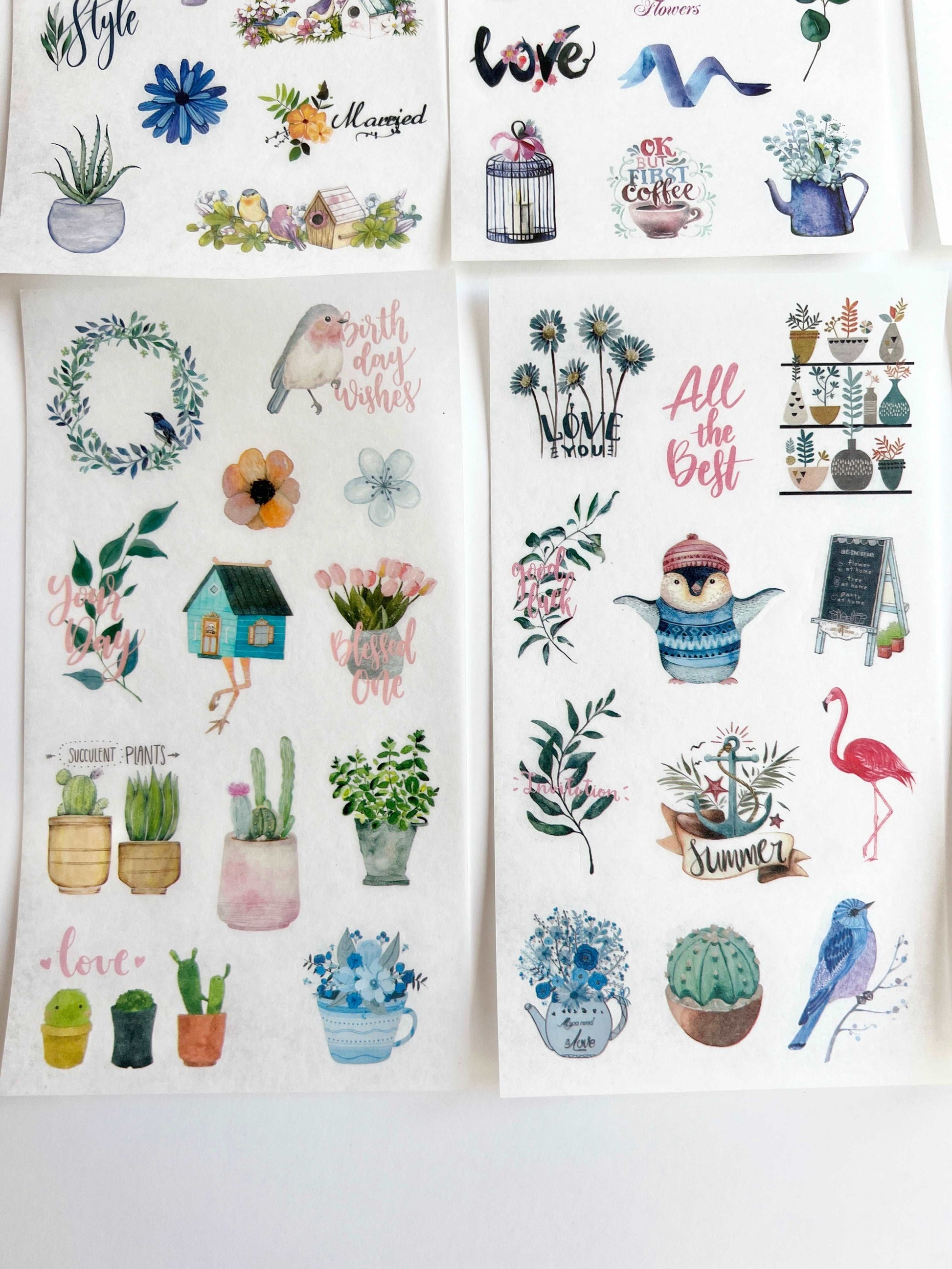 This listing is for 6 sheets of clear stickers, all described in the pictures.