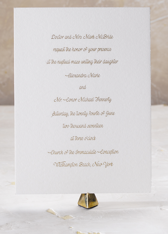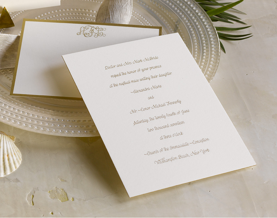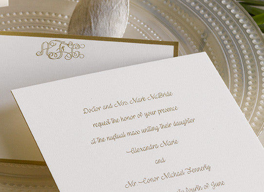 Alex + Conor is a luxurious gold engraved wedding suite by Pickett's Press. Also available with letterpress, thermography, foil or digital print methods.