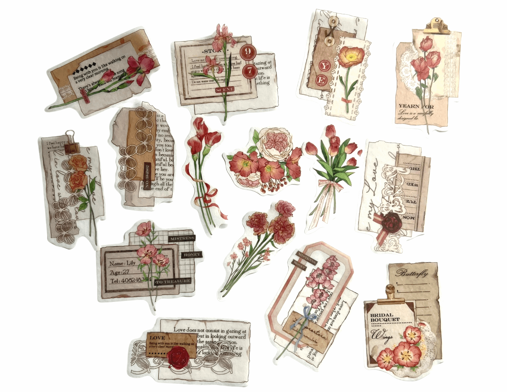 This die cuts sticker kit comes with a variety of flower illustrations and bujo inspired designs.