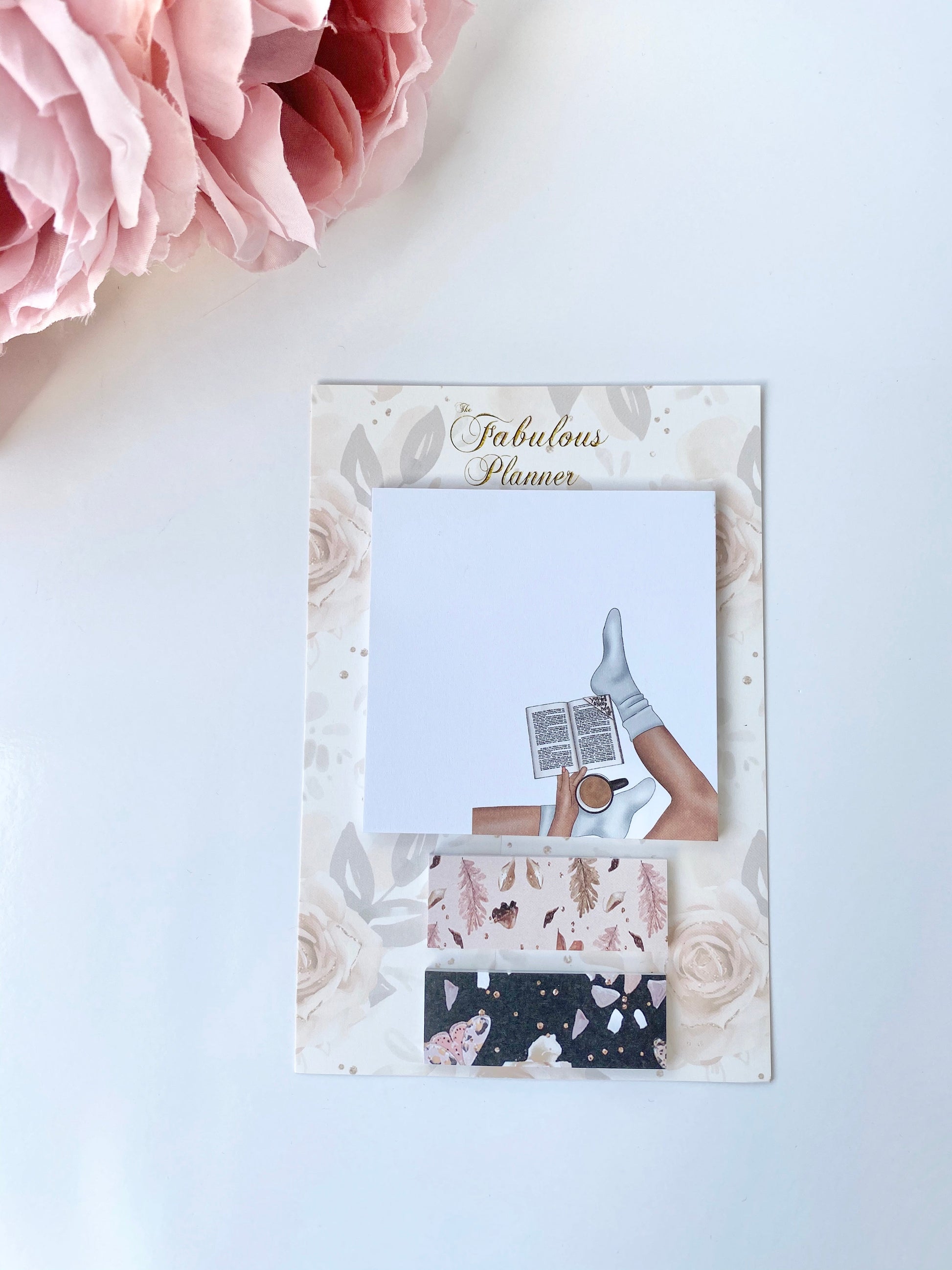 Featuring 50 pages with a sticky backing, you can use to take down notes or even write motivational quotes and sticky them in your mirror or computer. It also comes with 2 sets of bookmarks!