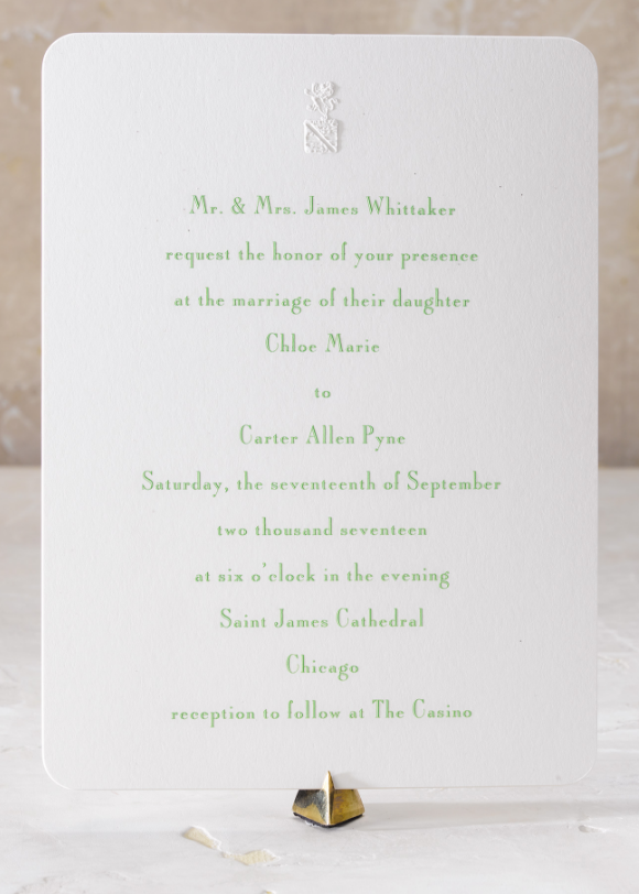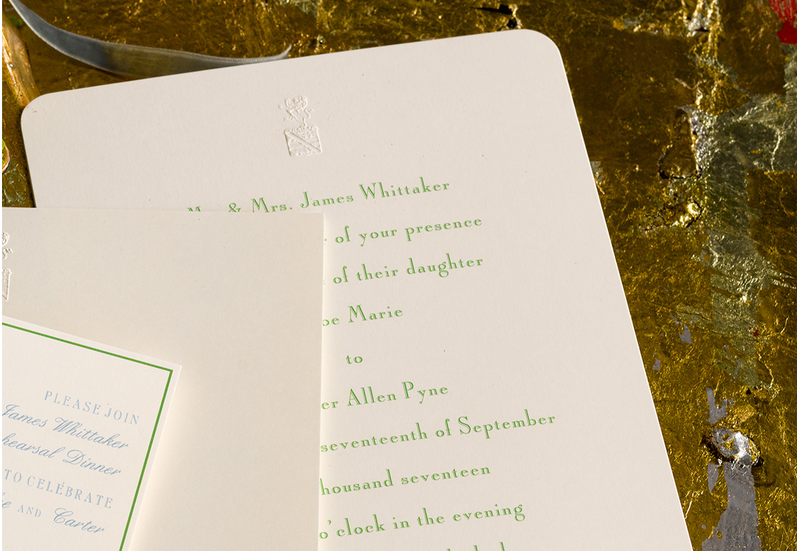 Chloe + Carter is a engraved wedding suite by Pickett's Press. Also available with letterpress, thermography, foil or digital print methods.