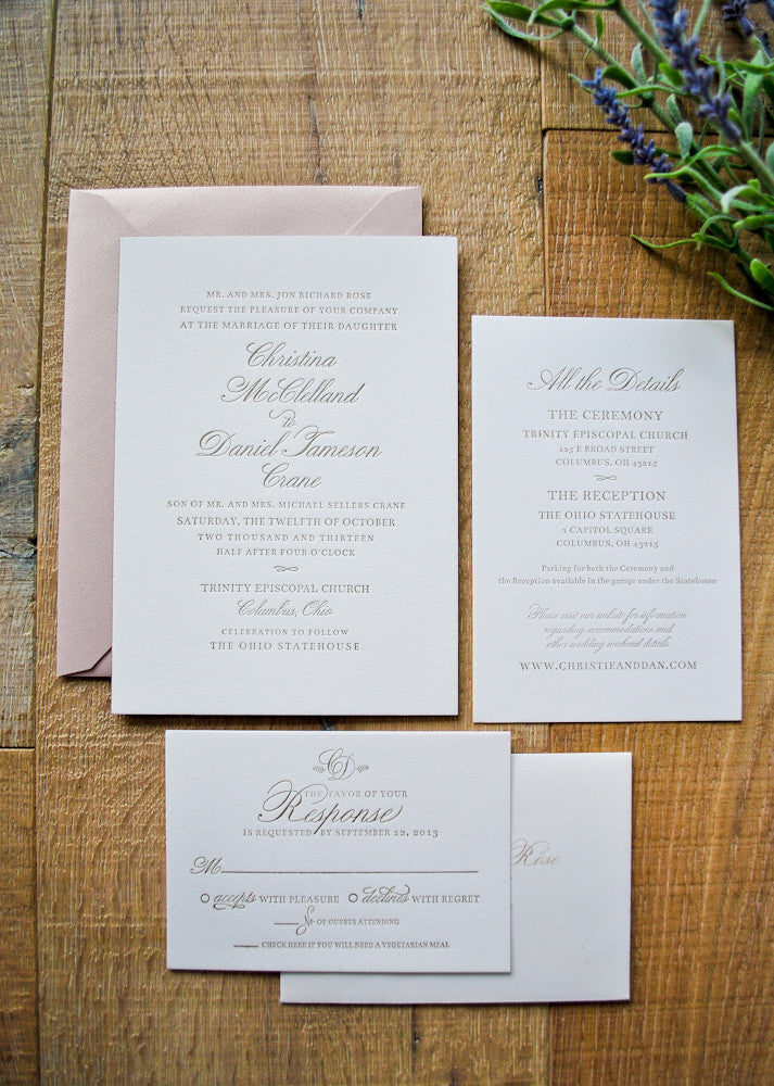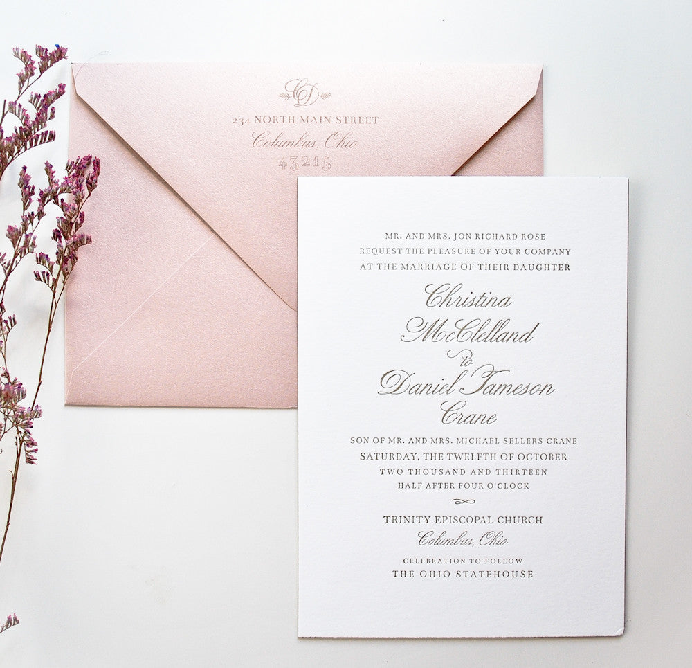 -Flat and Thermograph Invitations are printed on heavy #110 smooth or textured paper