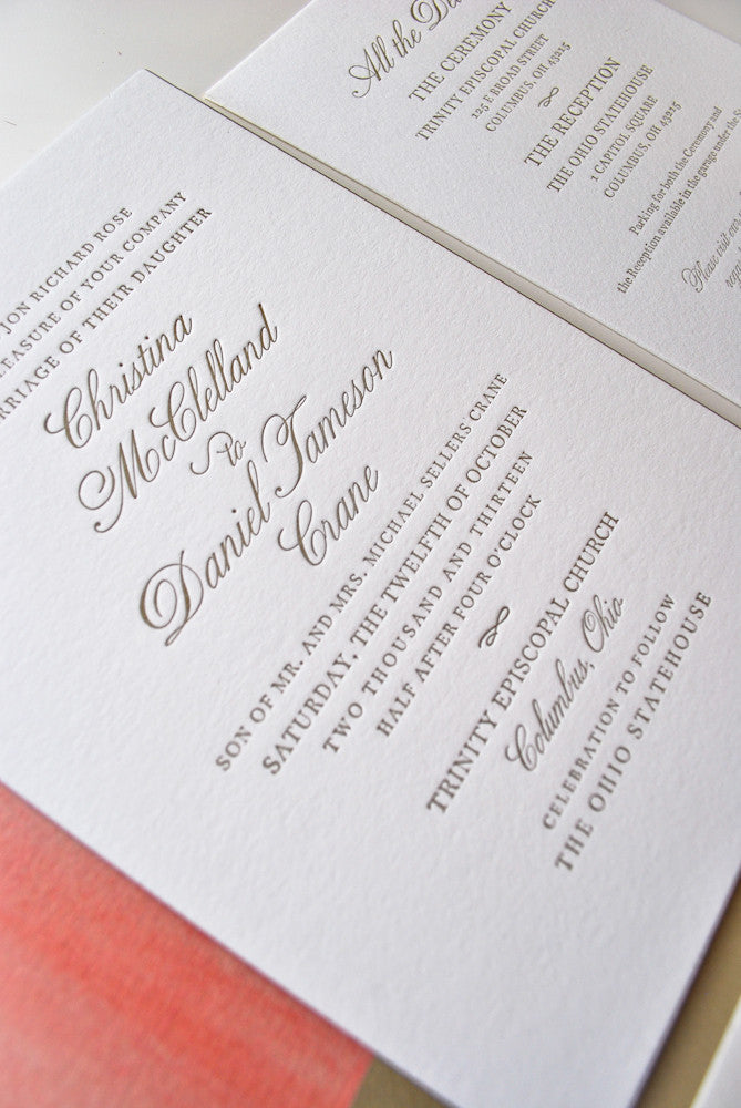 -Letterpress/Foil Invitations are printed on double thick, luxurious tooth 236# cotton paper