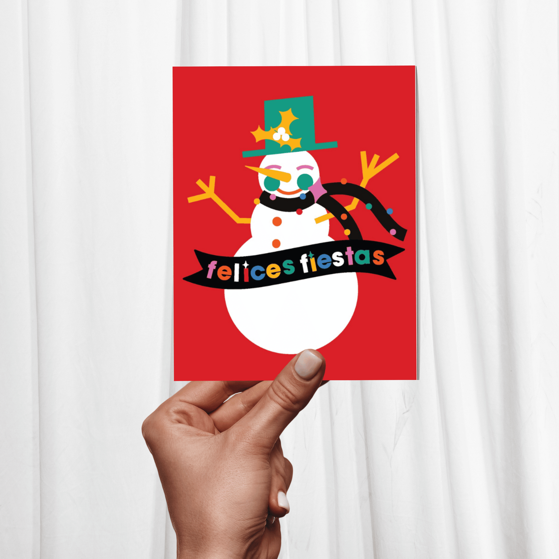 Haz que tus vacaciones sean mágicas con nuestra Tarjeta de Navidad Muñeco de Nieve Festivo. Esta tarjeta de tamaño A2 presenta un alegre muñeco de nieve en un fondo nevado, perfecto para difundir la alegría navideña. Impresa en papel reciclado de alta calidad, el interior en blanco es perfecto para tus saludos navideños personalizados.