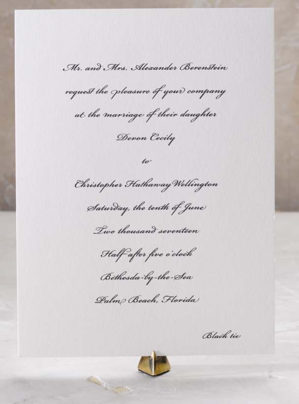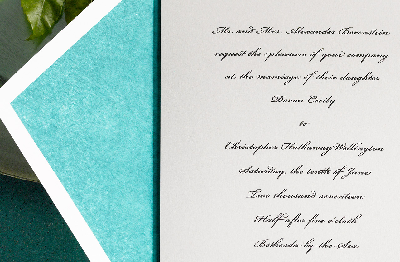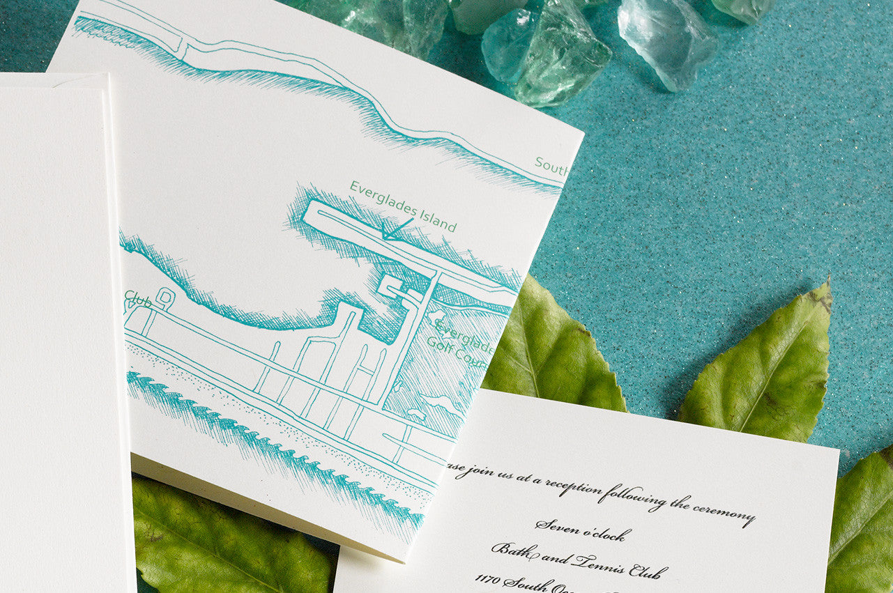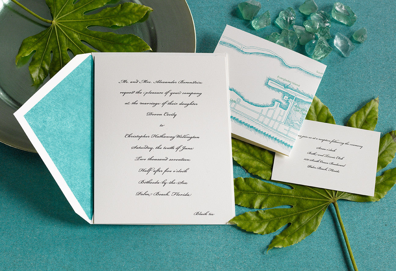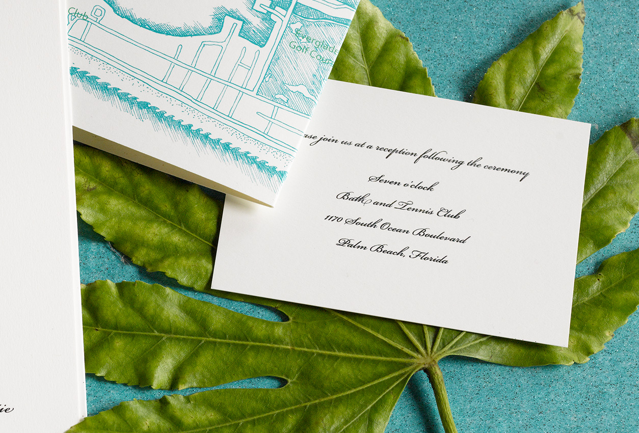 Devon + Chris is a thermography wedding suite by Pickett's Press. Also available with letterpress, engraving, foil or digital print methods.
