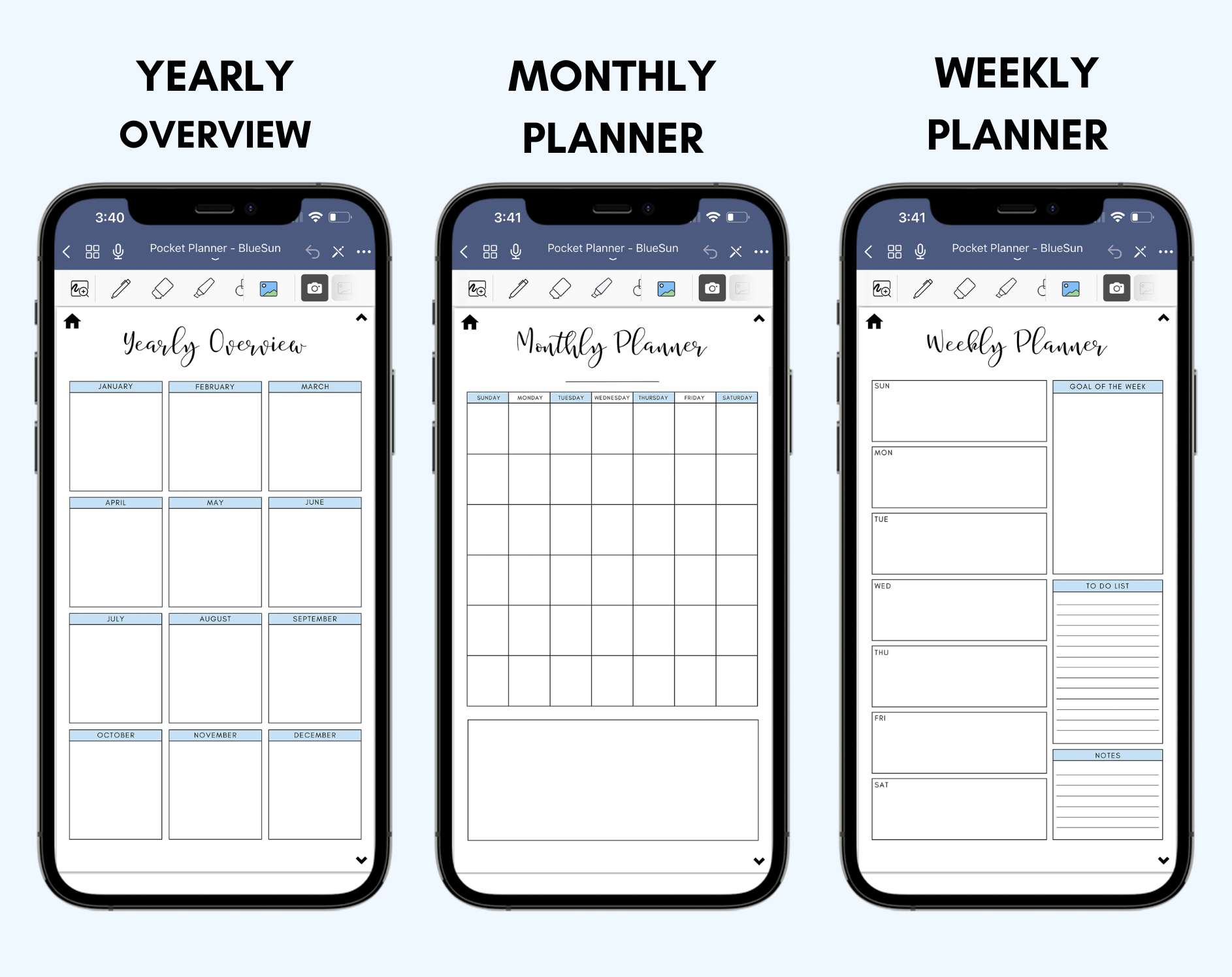 The Pocket Planner is an undated digital phone planner that can be used year after year. It covers all the planning basics, making it very functional, simple and easy to use.