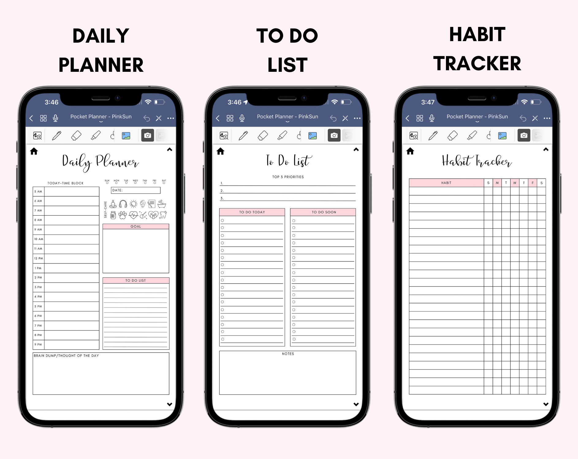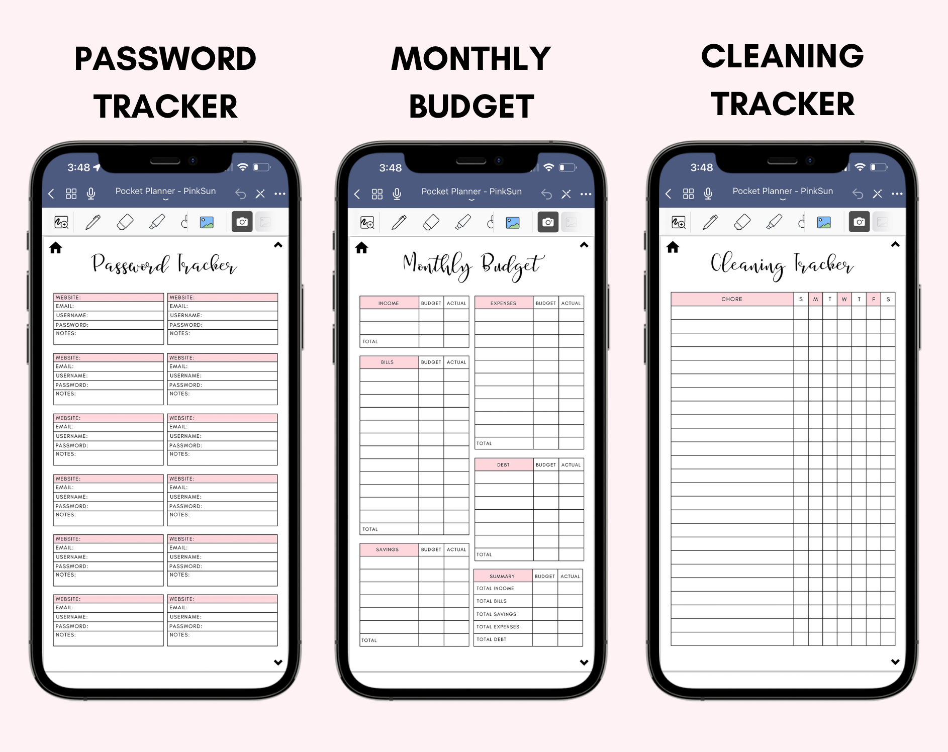 The Pocket Planner is an undated digital phone planner that can be used year after year. It covers all the planning basics, making it very functional, simple and easy to use.