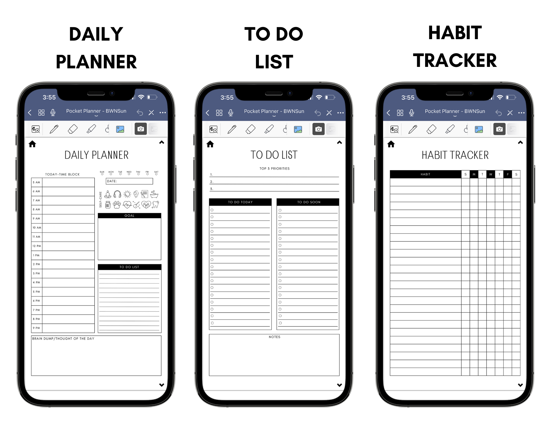 The Pocket Planner is an undated digital phone planner that can be used year after year. It covers all the planning basics, making it very functional, simple and easy to use.