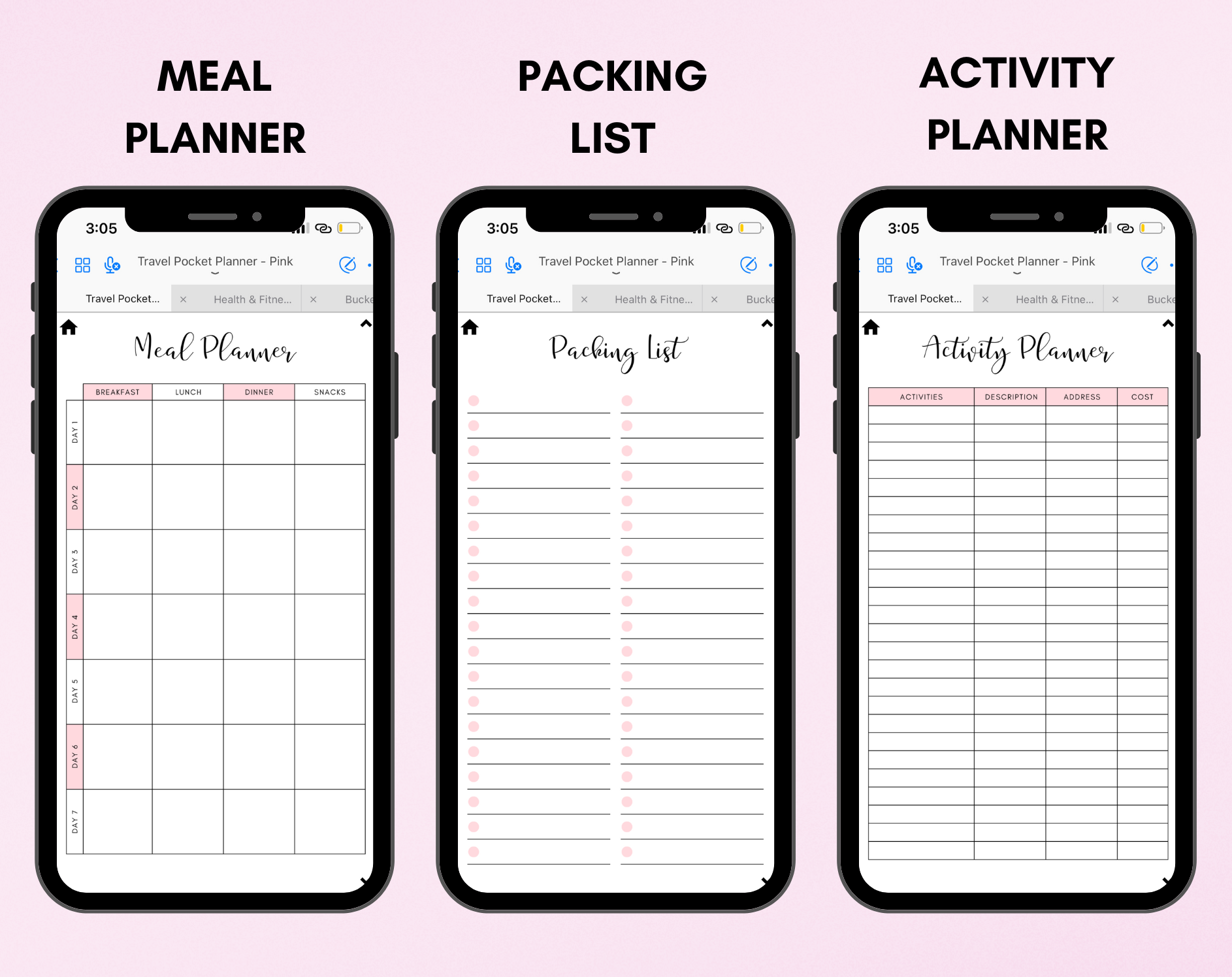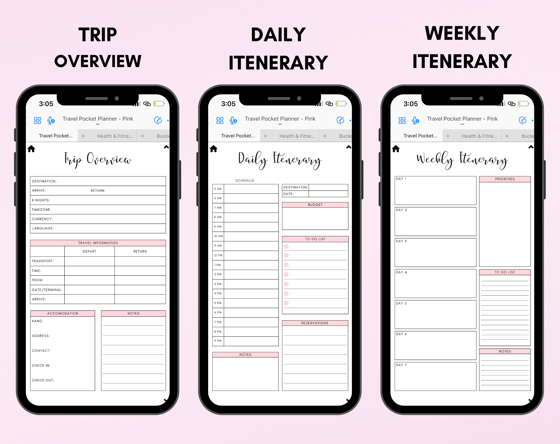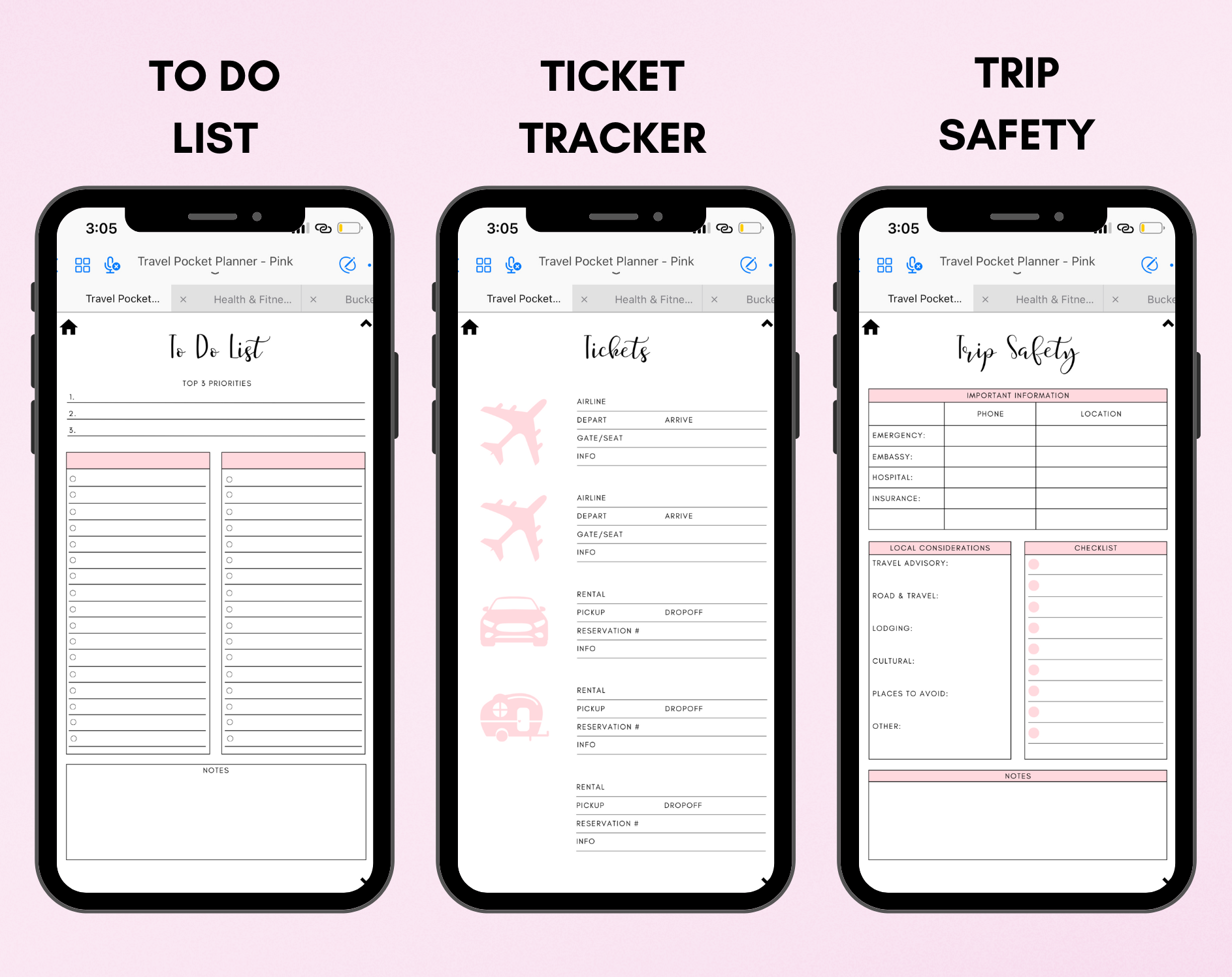 The Travel Pocket Planner is an undated digital phone planner that can be used year after year. It covers all the travel planning basics, making it very functional, simple and easy to use.