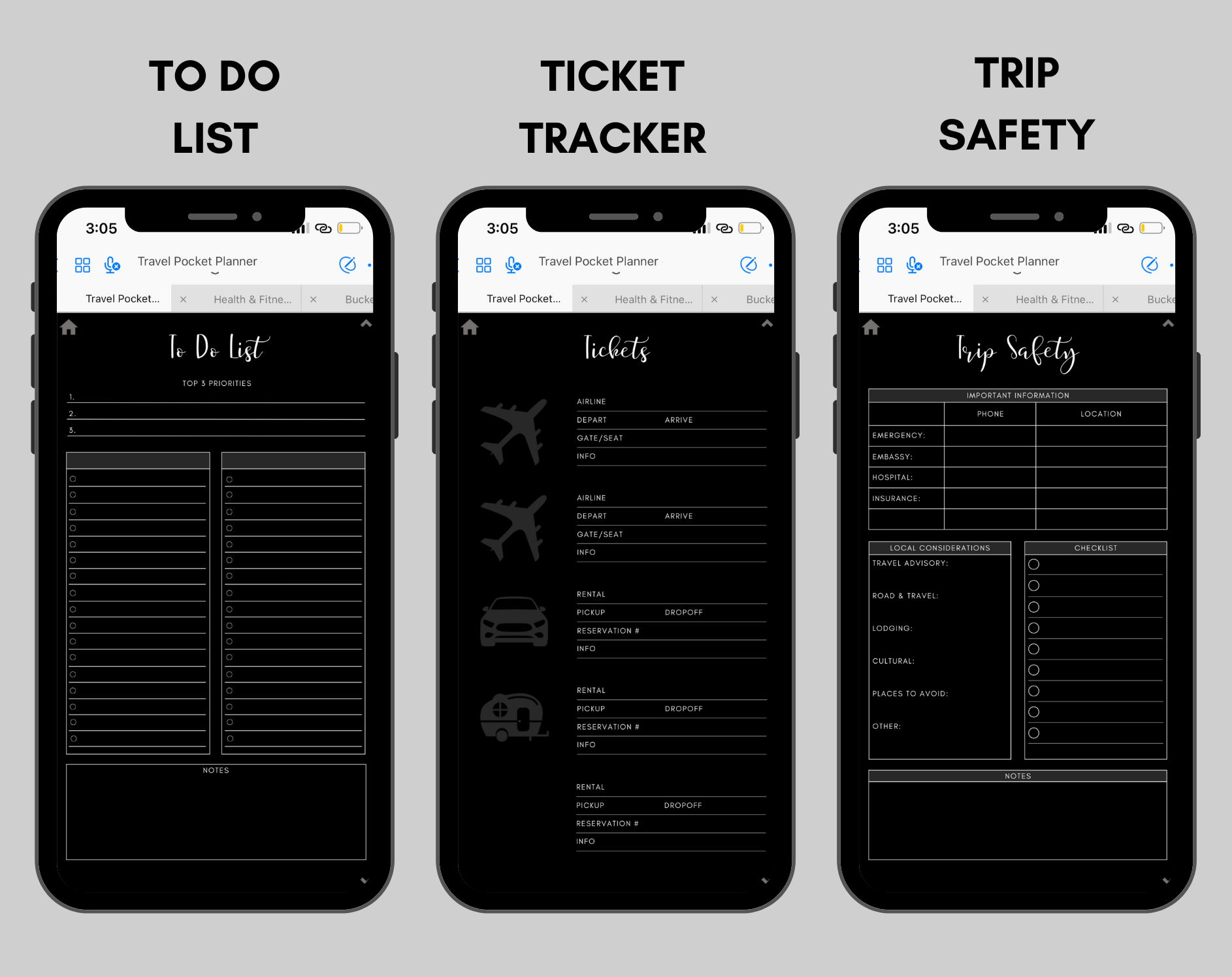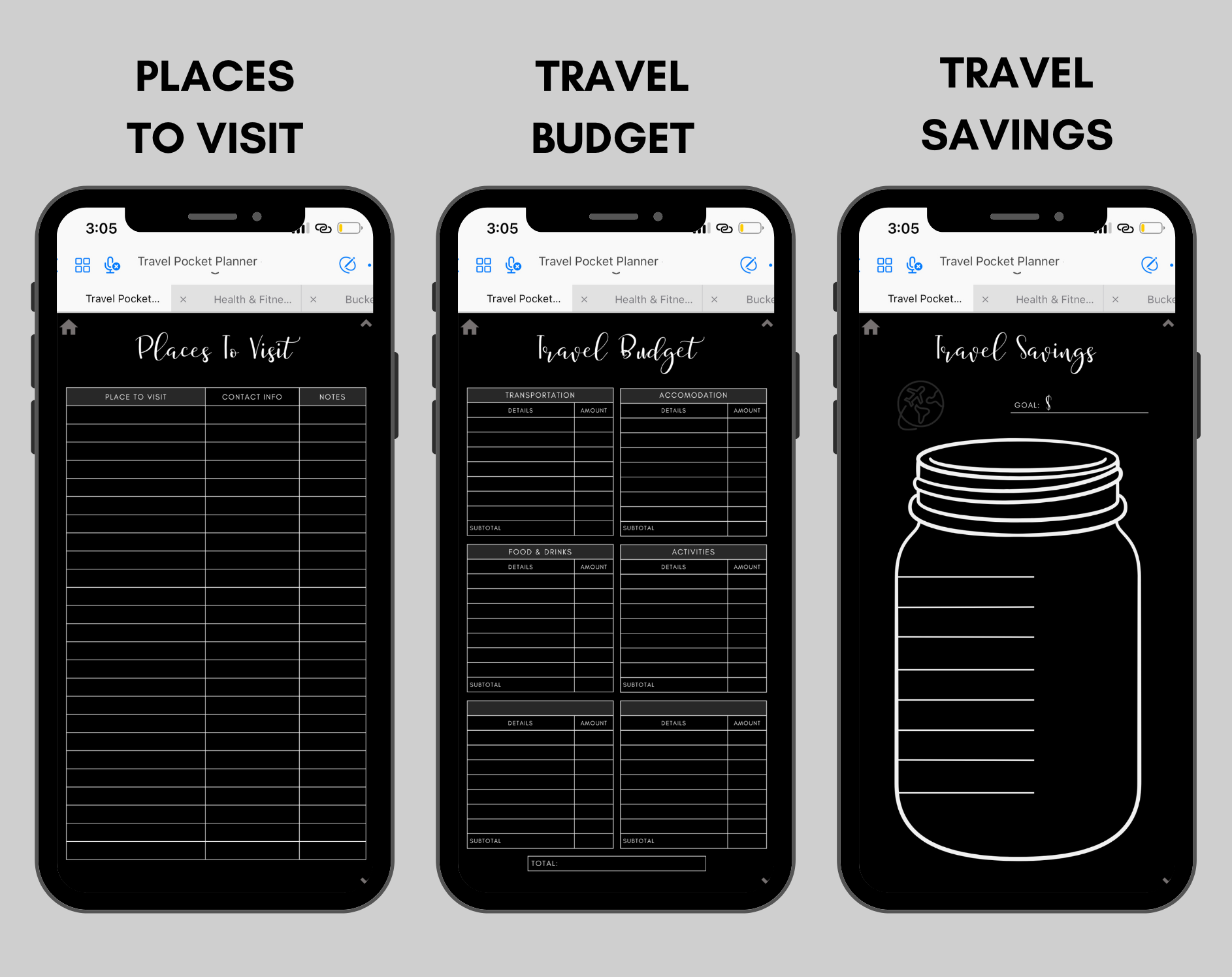 The Travel Pocket Planner is an undated digital phone planner that can be used year after year. It covers all the travel planning basics, making it very functional, simple and easy to use.