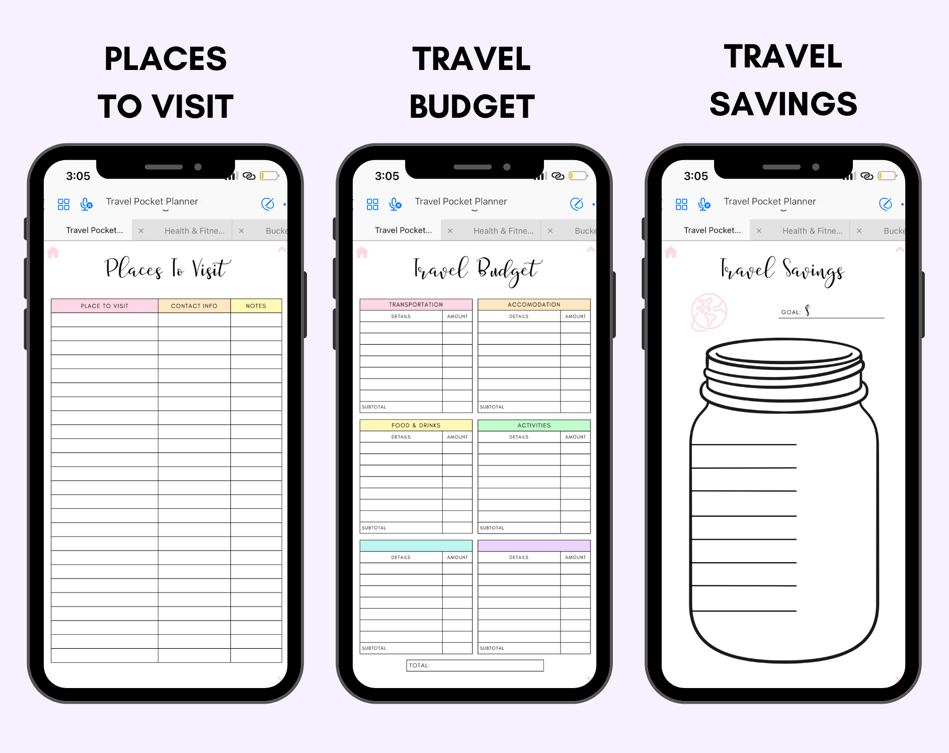 The Travel Pocket Planner is an undated digital phone planner that can be used year after year. It covers all the travel planning basics, making it very functional, simple and easy to use.