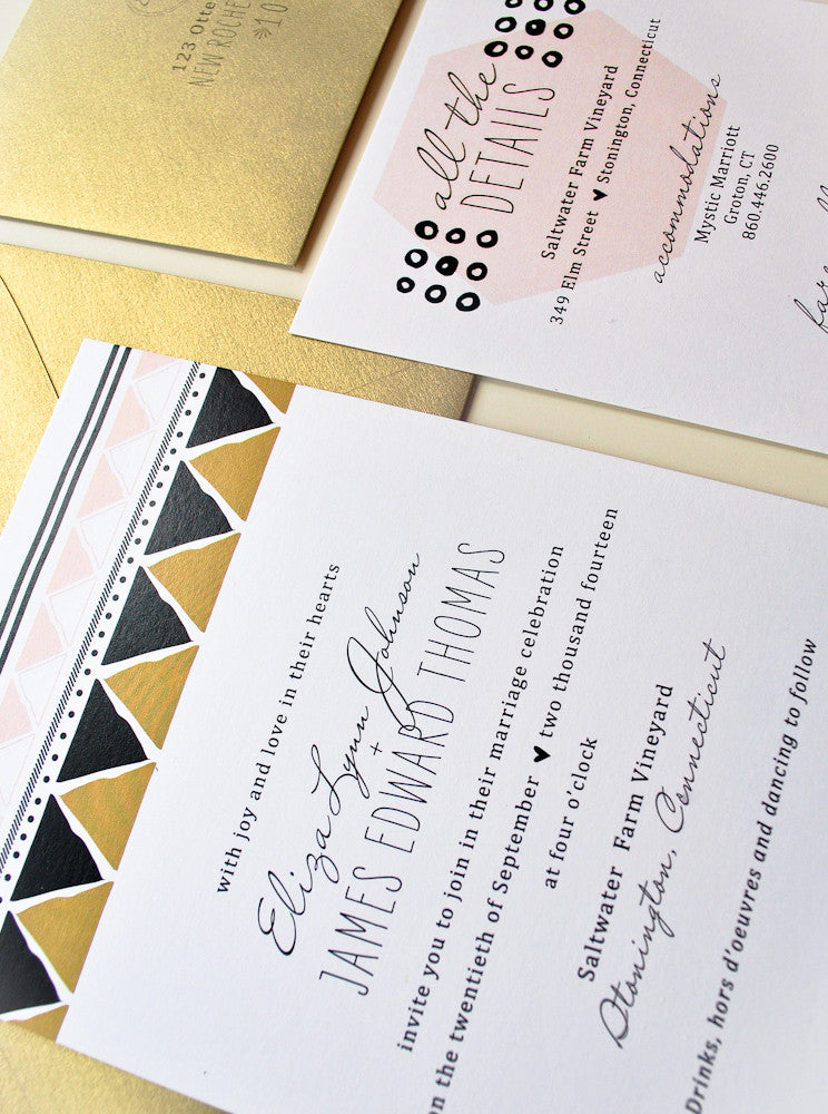 -Letterpress/Foil Invitations are printed on double thick, luxurious tooth 236# cotton paper