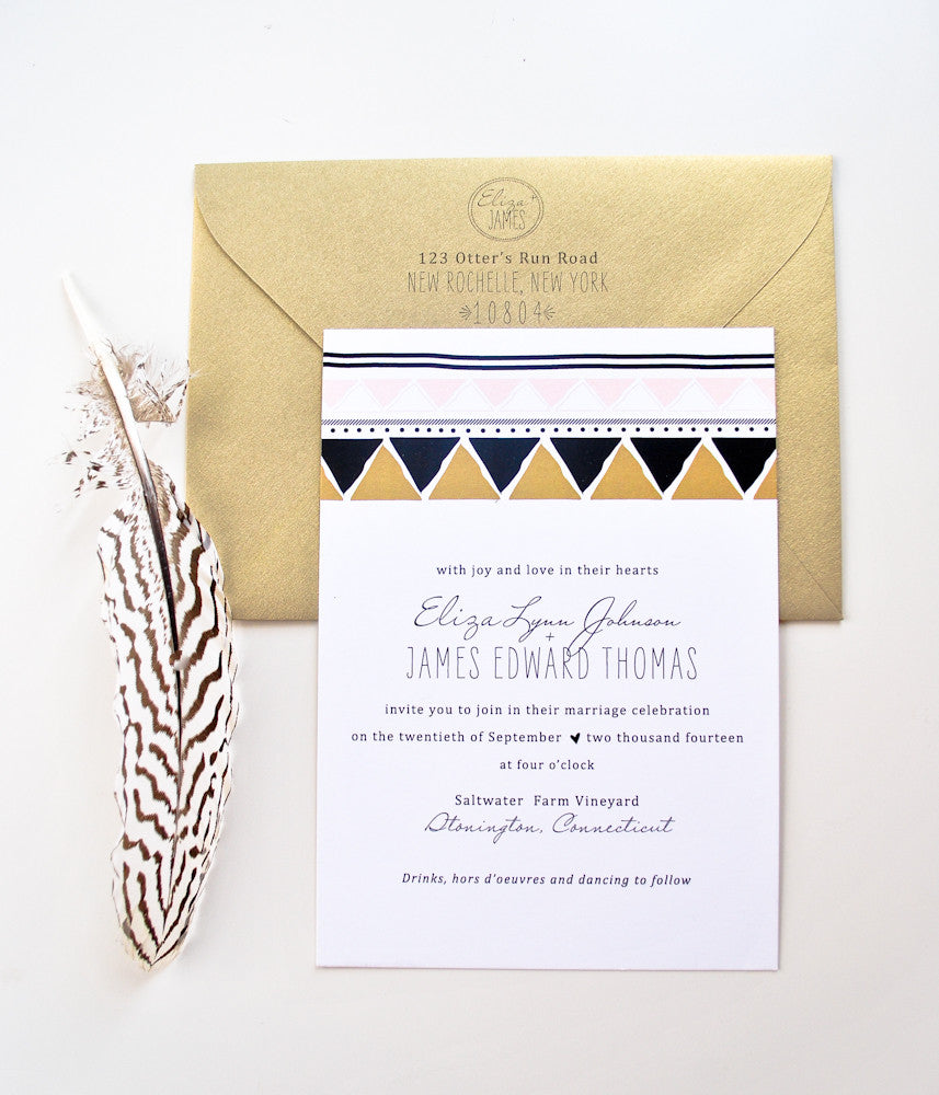 Eliza is never afraid to step outside of the box and challenge tradition a little. Her bold graphic pattern lends itself to a fun, modern take on the traditional nuptials.