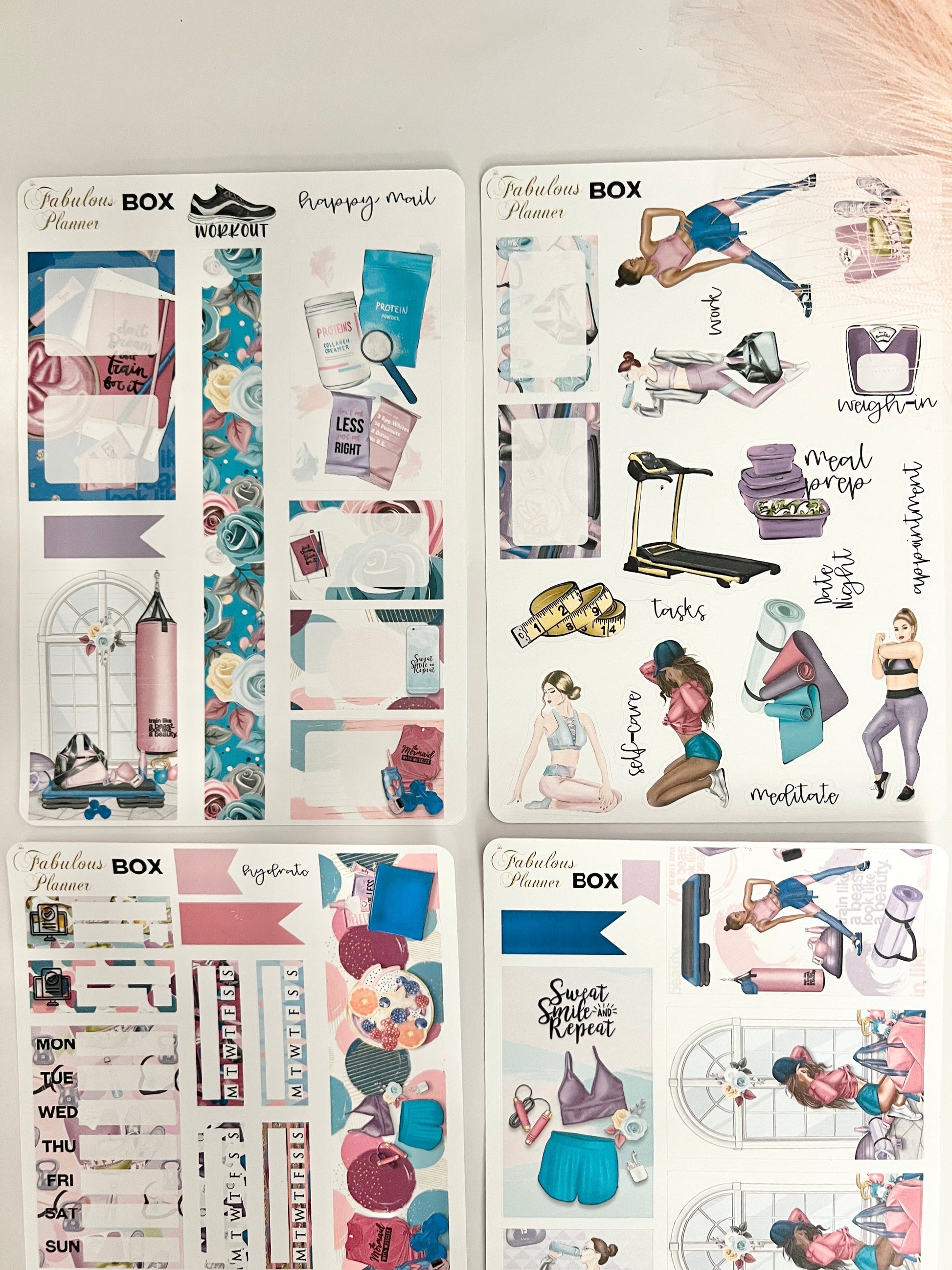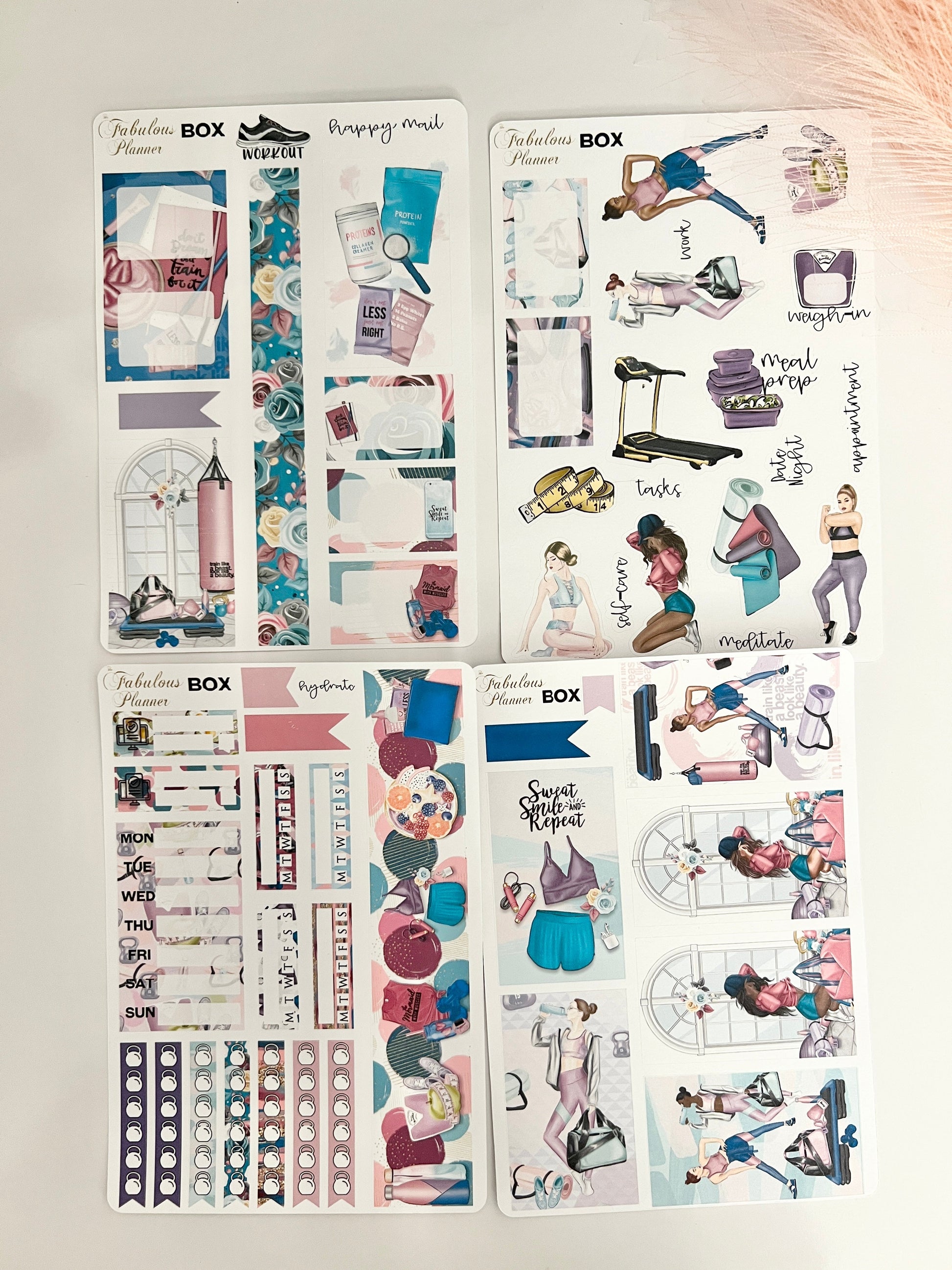 Our set of 4 sheets is jam-packed with everything you need to spice up your fitness routine. From cute water bottles to motivational quotes, you'll have everything you need to turn up the heat on your workout game. Stick 'em on your planner, your gym bag, or your water bottle - these stickers will make you the envy of your fitness crew.
