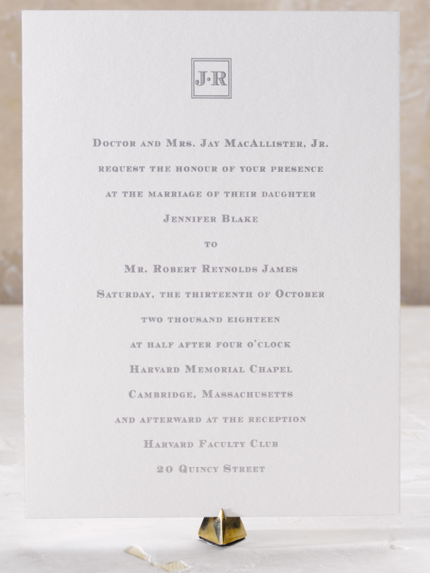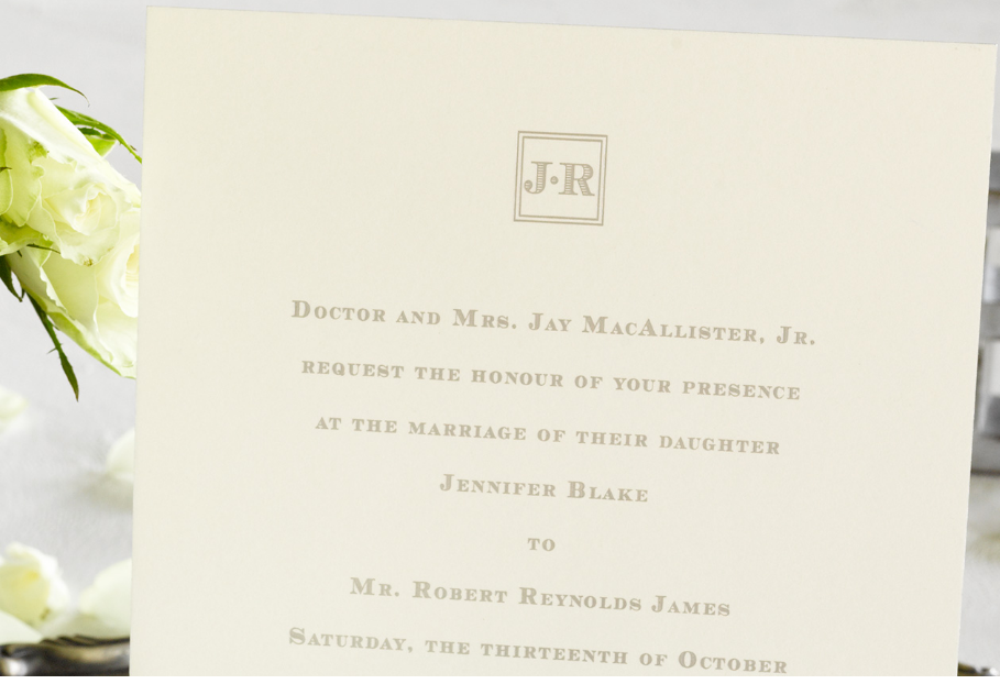 Jen + Rob is a foil wedding suite by Pickett's Press. Also available with letterpress, engraving, thermography, or digital print methods.