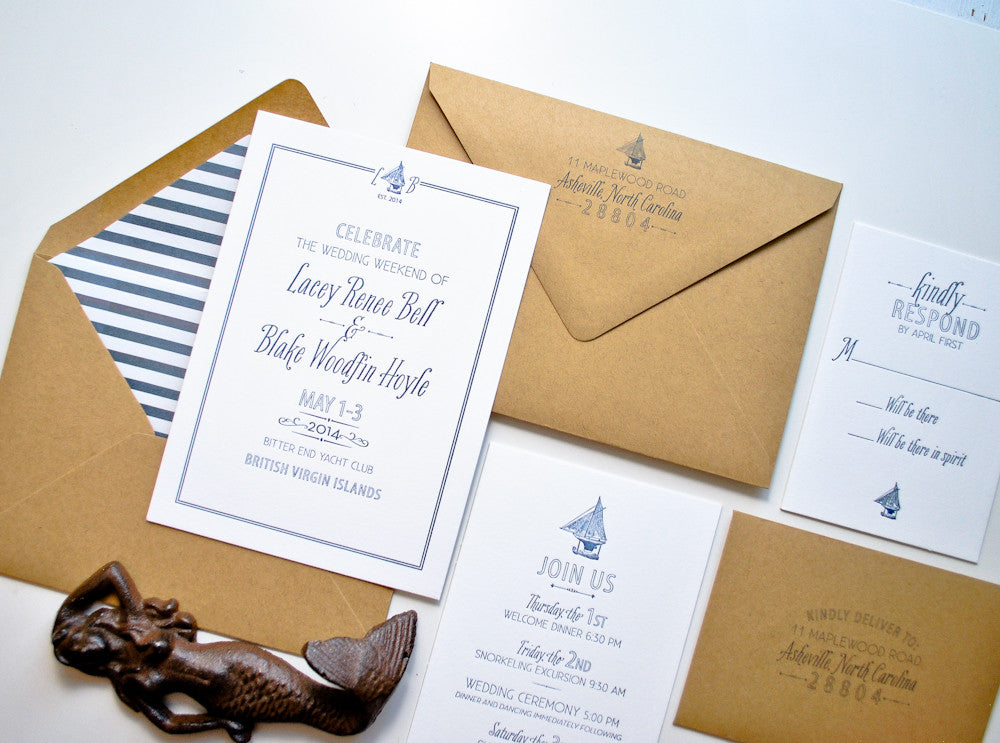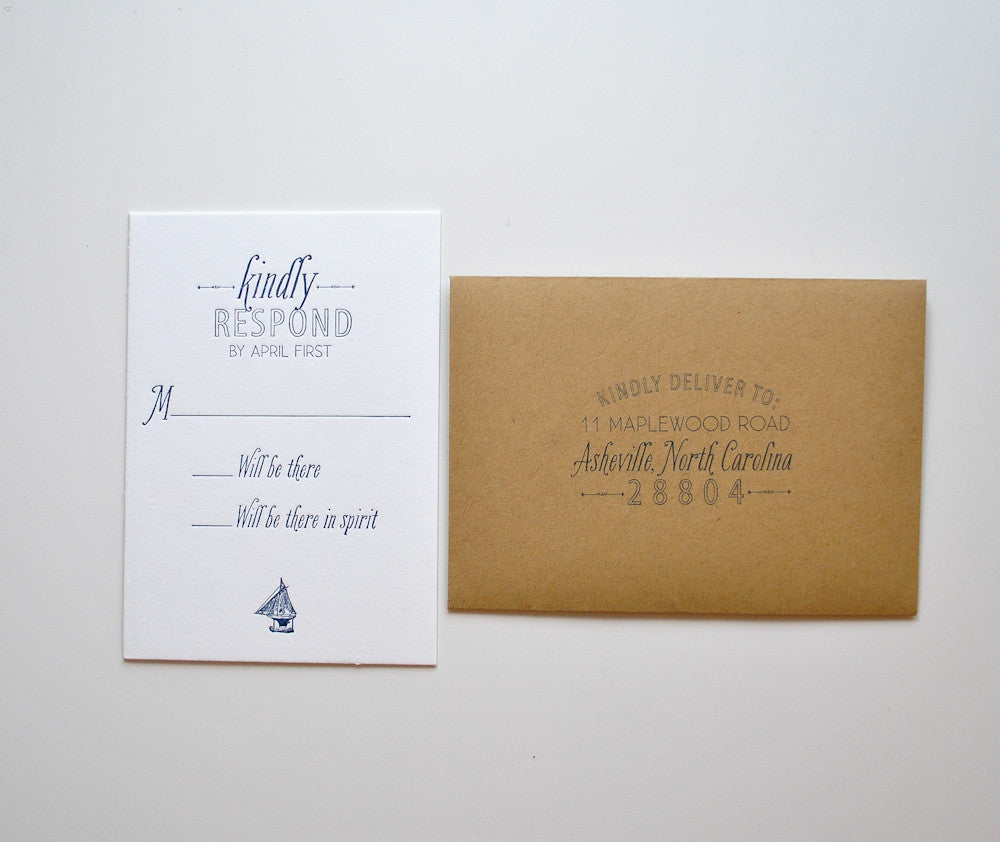 Invite purchase includes envelope with return address printing. Reply purchase includes return address printing.