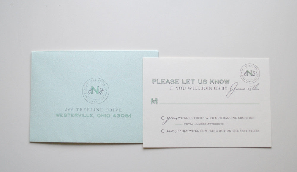 Invite purchase includes envelope with return address printing. Reply purchase includes return address printing.