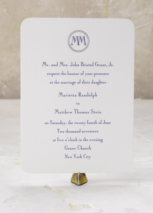 Marrietta + Matt is an engraved wedding suite by Pickett's Press. Also available with letterpress, thermography, foil or digital print methods.