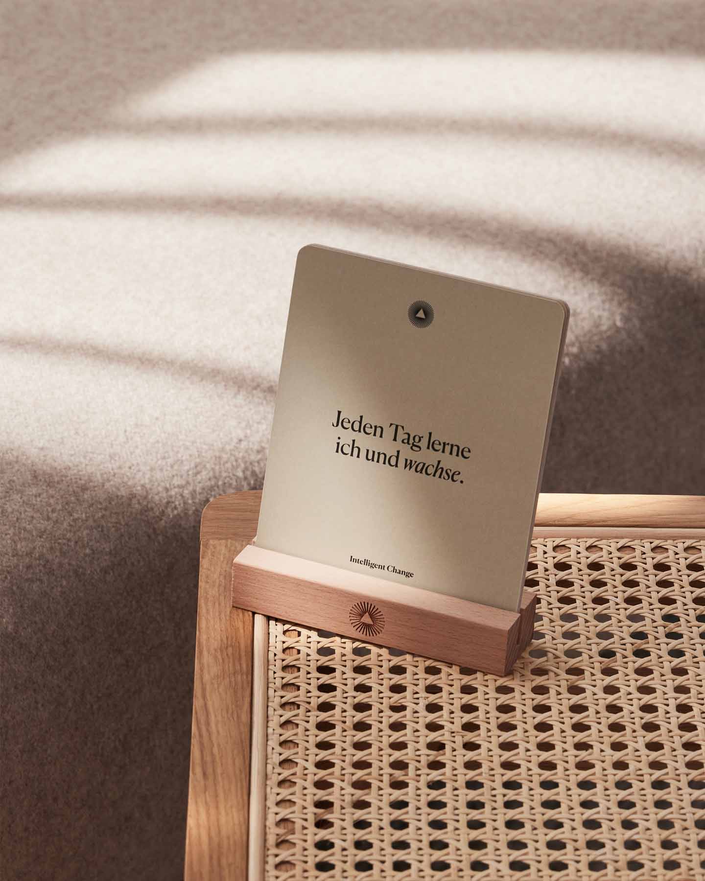German version of Mindful Affirmations that boost self-love, self-confidence, and mindfulness. Harness the power of positive thinking to overcome self-doubts and insecurities. Beechwood stand included.