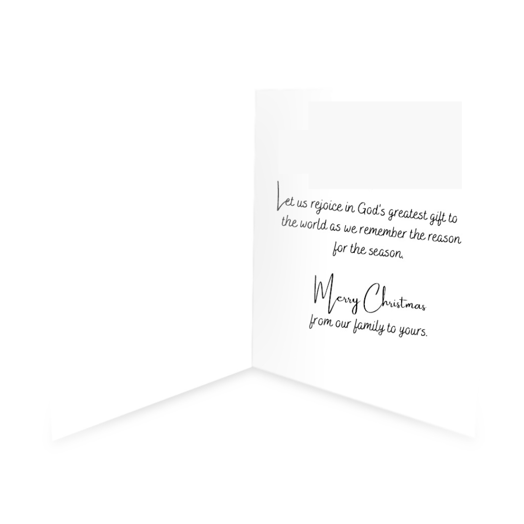 Inside Message: For unto us a child is born, unto us a son is given (Isaiah 9:6). Let us rejoice in God's greatest gift to the world as we remember the reason for the season. Merry Christmas from our family to yours.