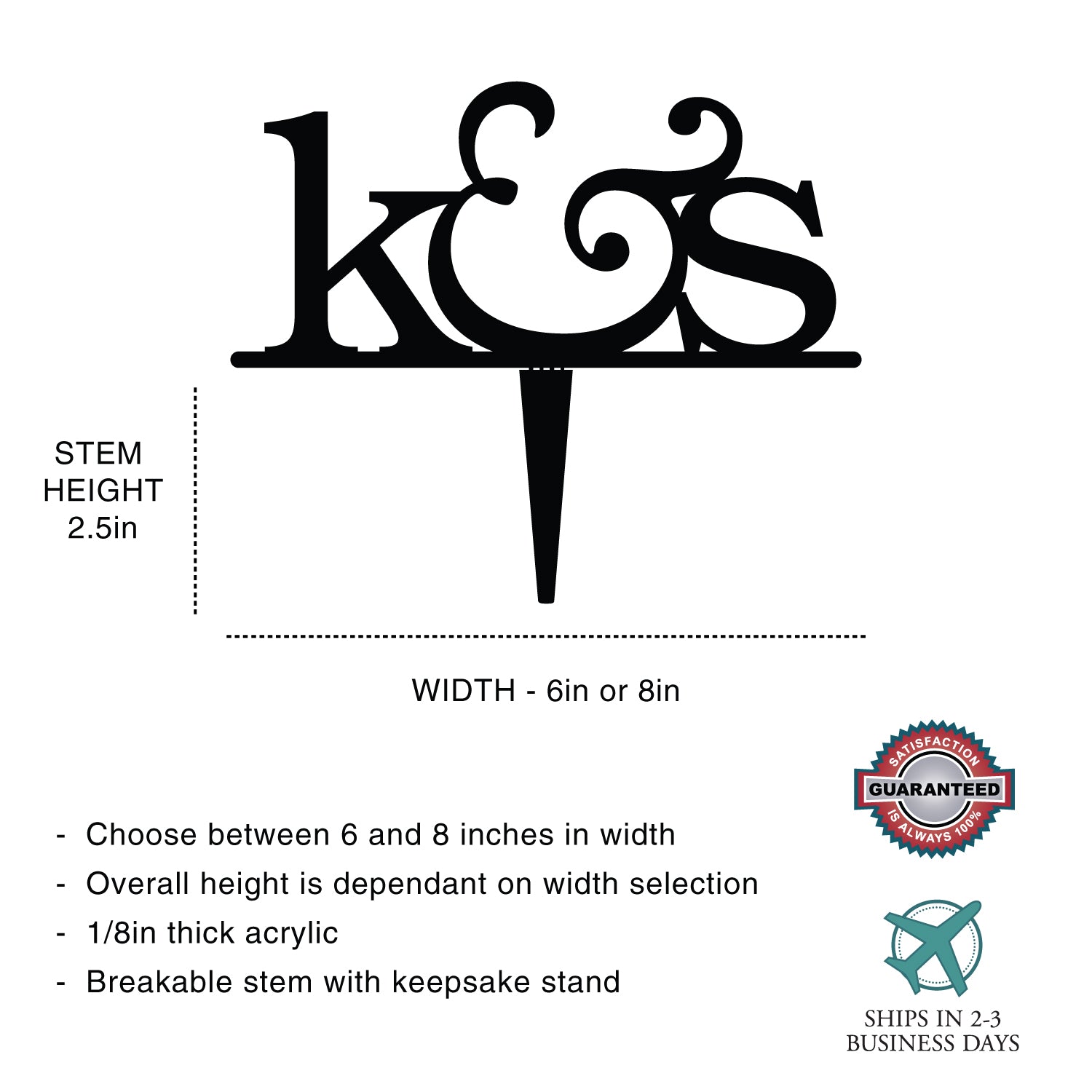 The perfect gift for life's milestones! Deliver unforgettable celebrations with our custom acrylic cake toppers. All toppers come equipped with a breakaway stem and a keepsake stand. Simply detach the breakaway stem and place the topper in the stand to proudly display and commemorate the special occasion.