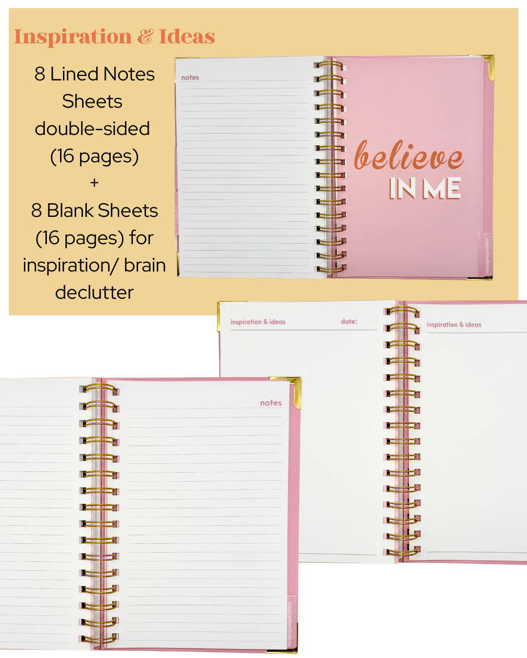 📝 Undated & Flexible Layout – Start whenever you’re ready! With undated weekly and daily spreads, this planner gives you total freedom to plan on your terms — no wasted pages or pressure to start in January.