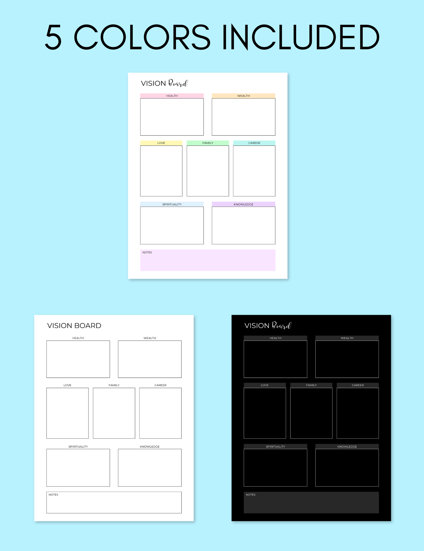 Ready to start planning your dream life so it can become your new reality? This Vision Board planner page is going to help you explore your innermost self and your deepest desires.
